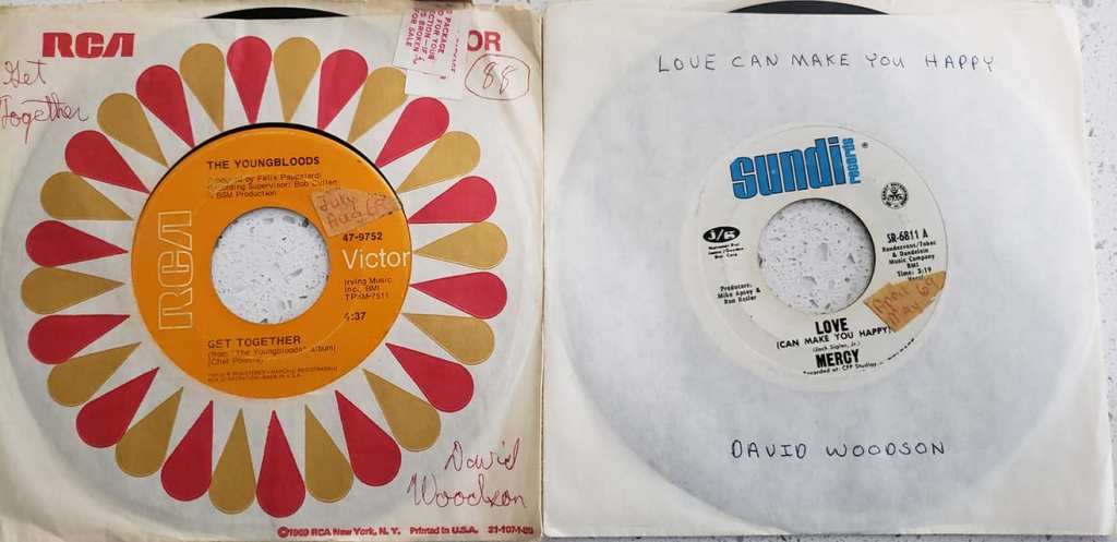 From my music collection of 45 rpm singles: “Get Together” by the Youngbloods & “Love (Can Make You Happy)” by Mercy.
