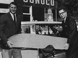 Jack Fisher (left) working a WROV remote broadcast at Sunoco gas station on Franklin Road Roanoke. Courtesy of WROV History Website/Pat Garrett.