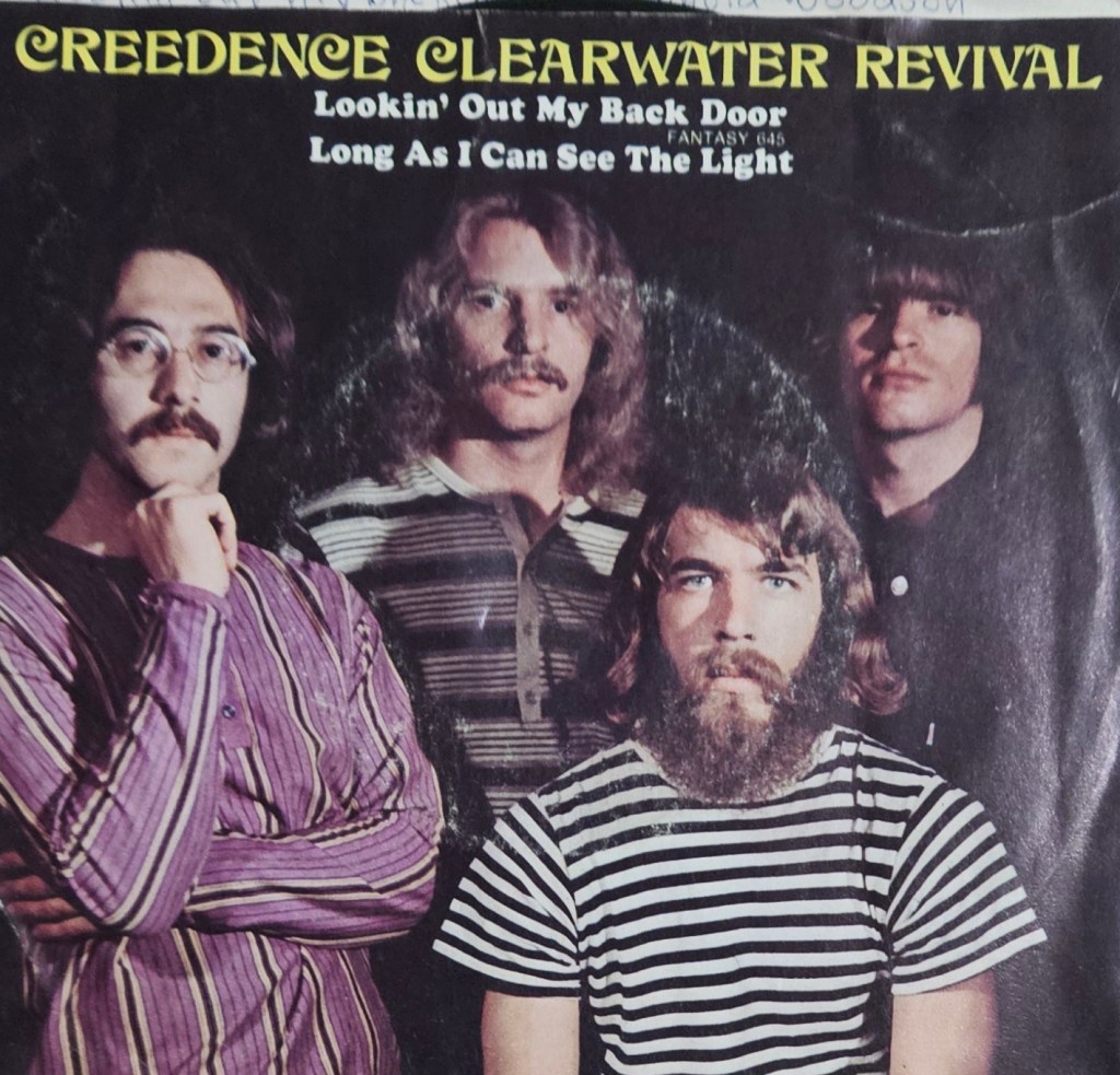 I became a CCR fan in 1969 and just after my birthday that year, I bought my first CCR record: the Double-A-Sided 45-rpm “Bad Moon Rising” and “Lodi” single. Later in ’69, I purchased another double-sided smash single: “Fortunate Son” and “Down on the Corner.”